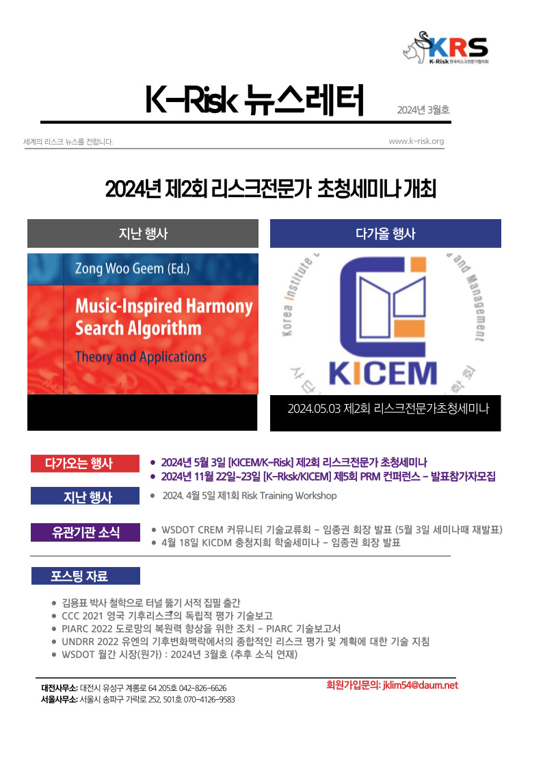 | [K-Risk 발간편집위원회] 2024년 월간 K-Risk NewsLetter 4월호 (1) | 2024.05.20 |